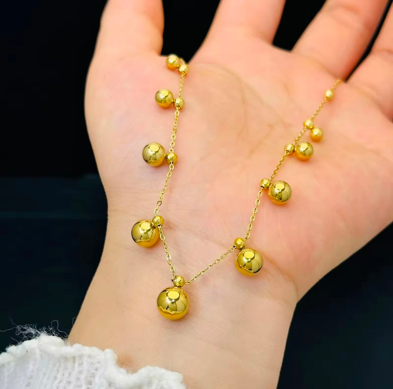 Fashion titanium steel jewelery Necklace metal round bead chain light luxury necklace for women